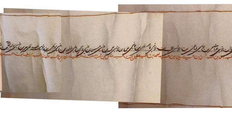 فإن هذه النسخة النسبية والدولة العالية العباسية قد نقلت من أصل صحيح معتبر لا خلاف فيه فهو ثابت المكنون وقوي المضمون يعتبر ما تضمنه وقد أعطوا هذه النسخة الشريفة لتستمر محفوظة معهم إلى أمد بعيد بعد مقابلتها لأصلها الأصيل والبحر النبيل فصممت من غير تغيير ولا تبديل والله على ما نقول وكيل فمنبدل أو غير هذا الانتظام فحسبه الله في المبدأ والختام تحريرا في 9 ذيالحجة سنة 1347 من هجرته صلى الله عليه وسلم