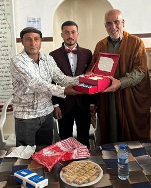 كما نتقدم بالتهنئة الخالصة إلى عائلتي العروسين، سائلين المولى عز وجل أن يديم عليهما الأفراح والمسرات.